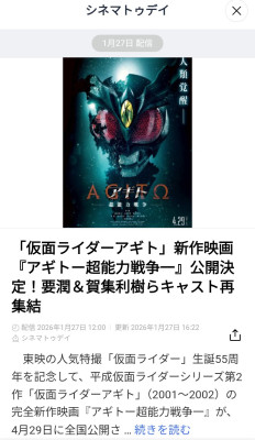 いく! 2026/01/28 09:57:25 広く浅く色んなことが好き💕な私ですが昨日のネットニュースで❣️アギト映画化🎥ありがとうございます✨️✨️✨️✨️✨️キャストも変わらないようですはぁ、、、楽しみ🎶ただ公開時期がコナンやらその他沢山被りそうで、、、それも楽しみのひとつですね😊鶯谷にてお誘いお待ちしてます🥰